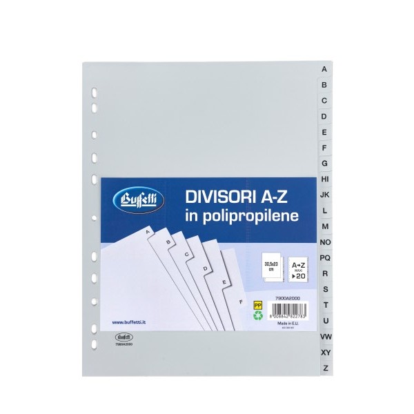Buffetti Divisori - Polipropilene - A-Z - 20 tasti - A4 - grigio