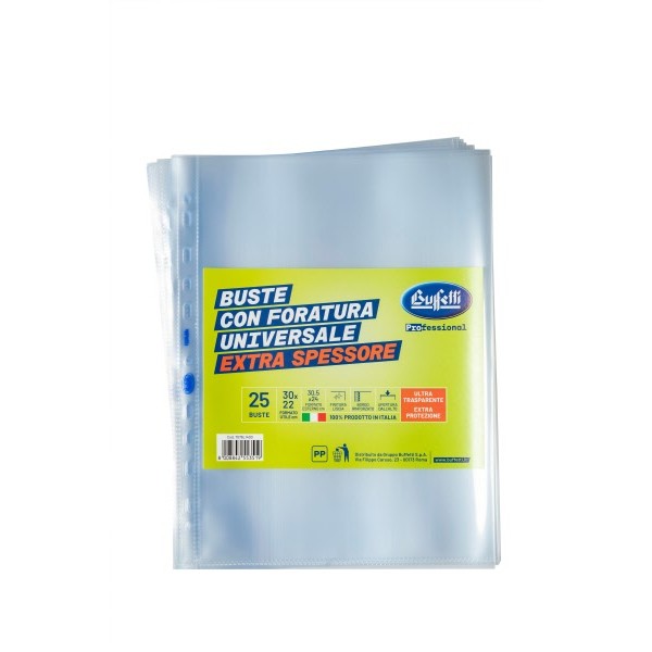 Buste a foratura universale Buffetti - Spessore basso - Goffrata - conf. 50 pz.
