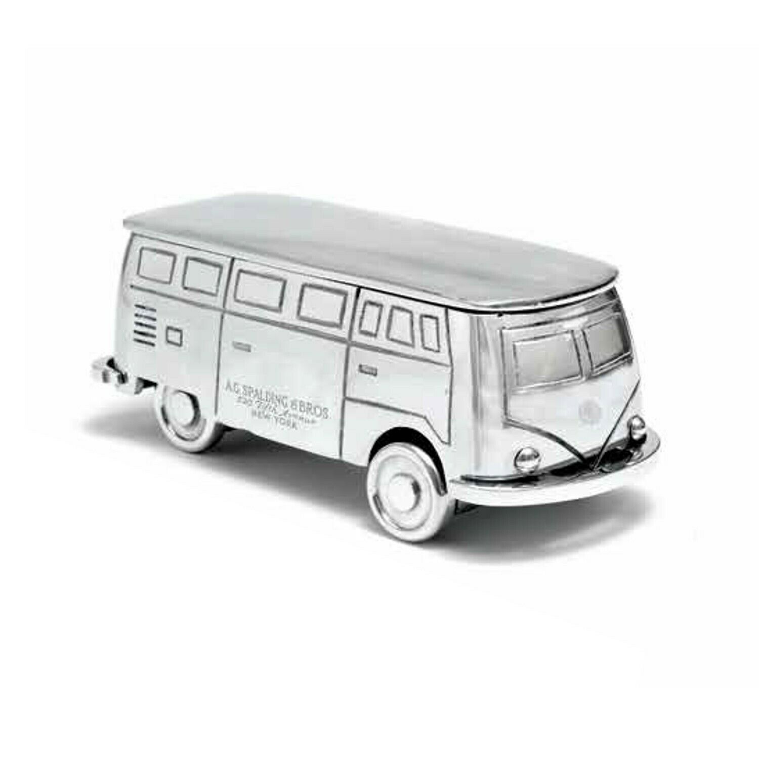 Furgoncino Bully realizzato in alluminio della caratteristica linea vintage, prodotto con l'antico sistema della fusione. Increspature, superficie non uniforme, piccoli segni sono le caratteristiche della particolare lavorazione.